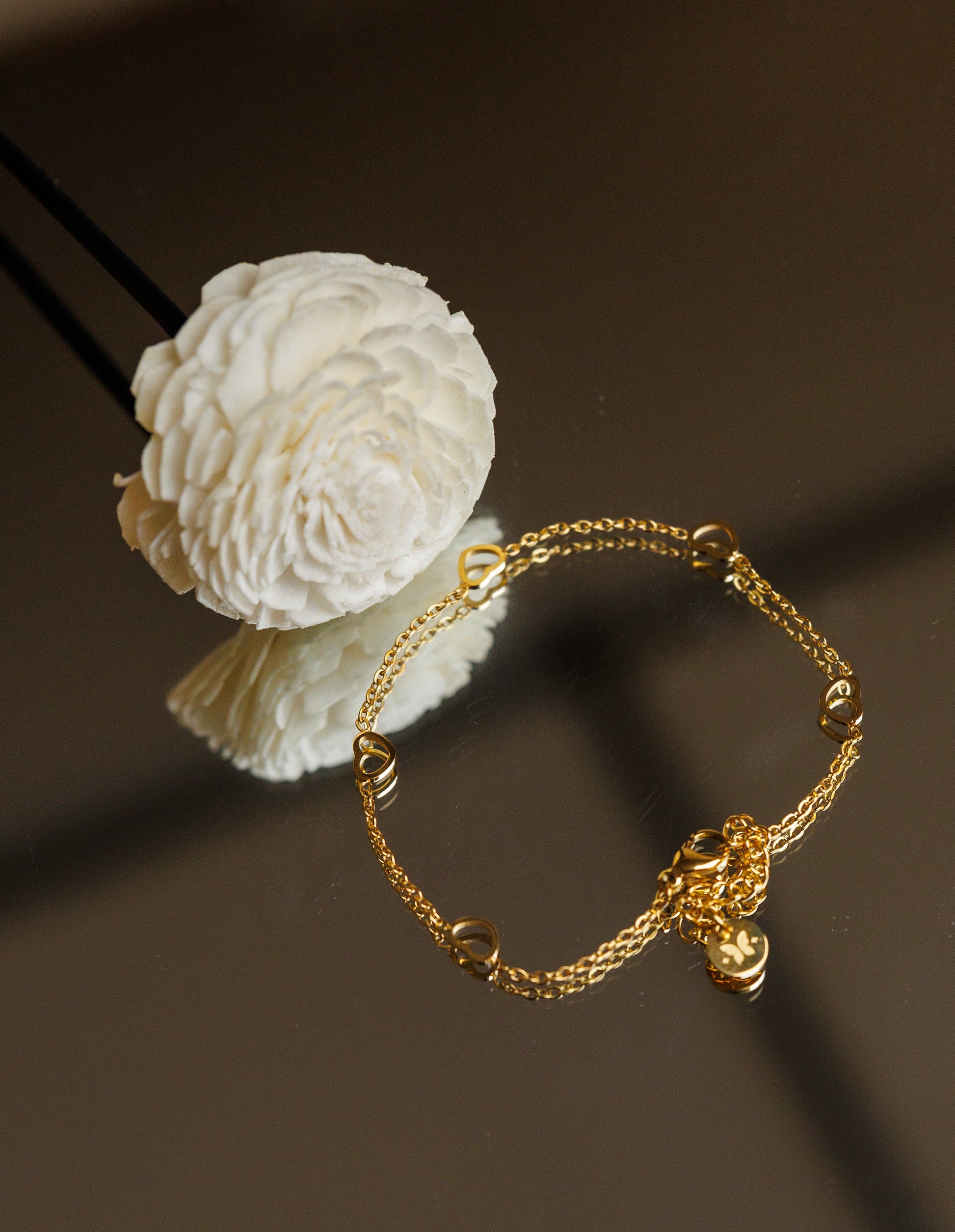 This 18k gold plated hollow heart charm bracelet features an adjustable 7.89 inch chain with an extension option. Made from durable stainless steel and hand crafted, it is resistant to discoloration, fading. Lightweight at 2.0g for comfortable wear.