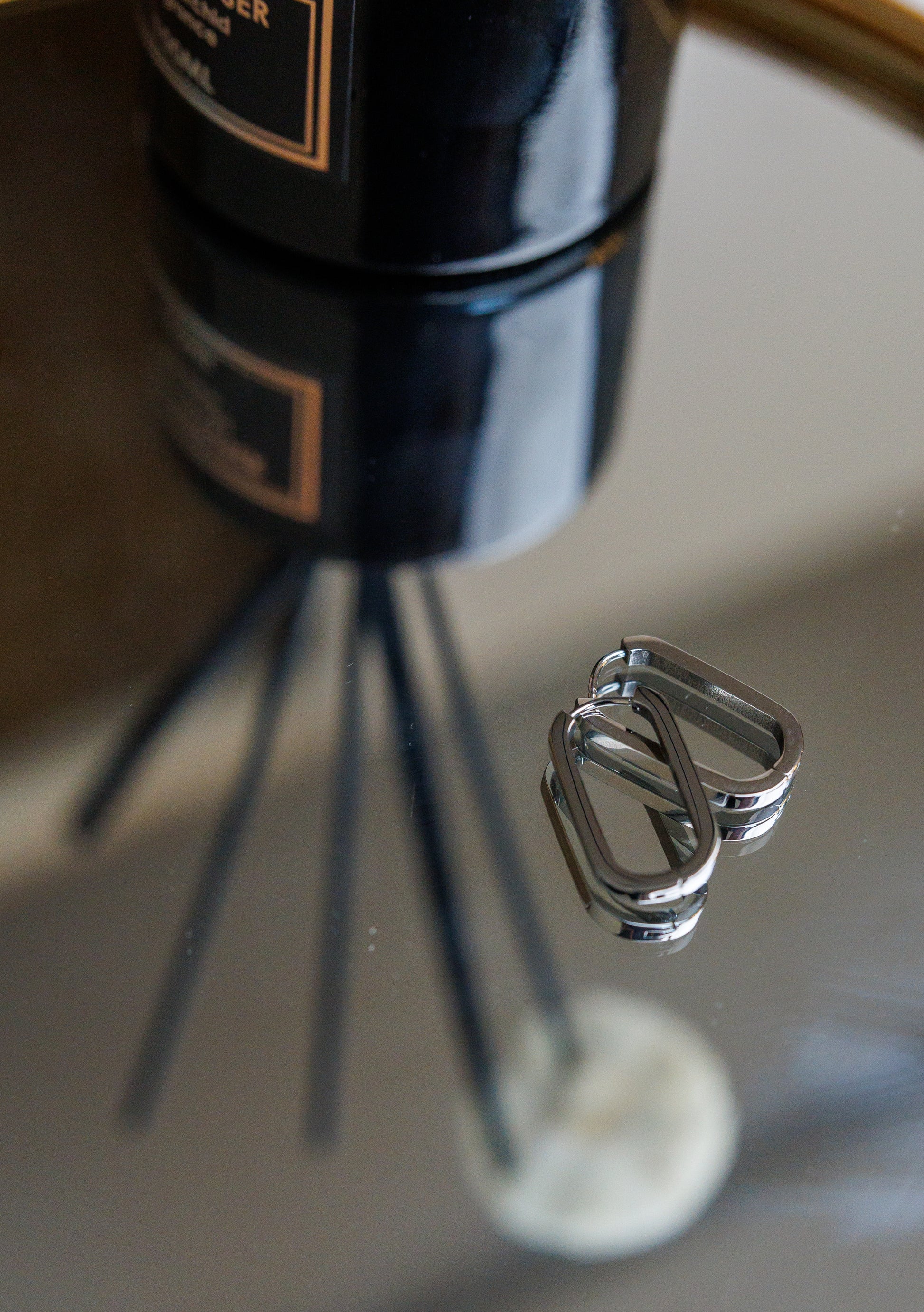 Crafted from stainless steel , these geometric oval and rectangular hoop earrings are designed to resist tarnishing for a timeless, elegant look.