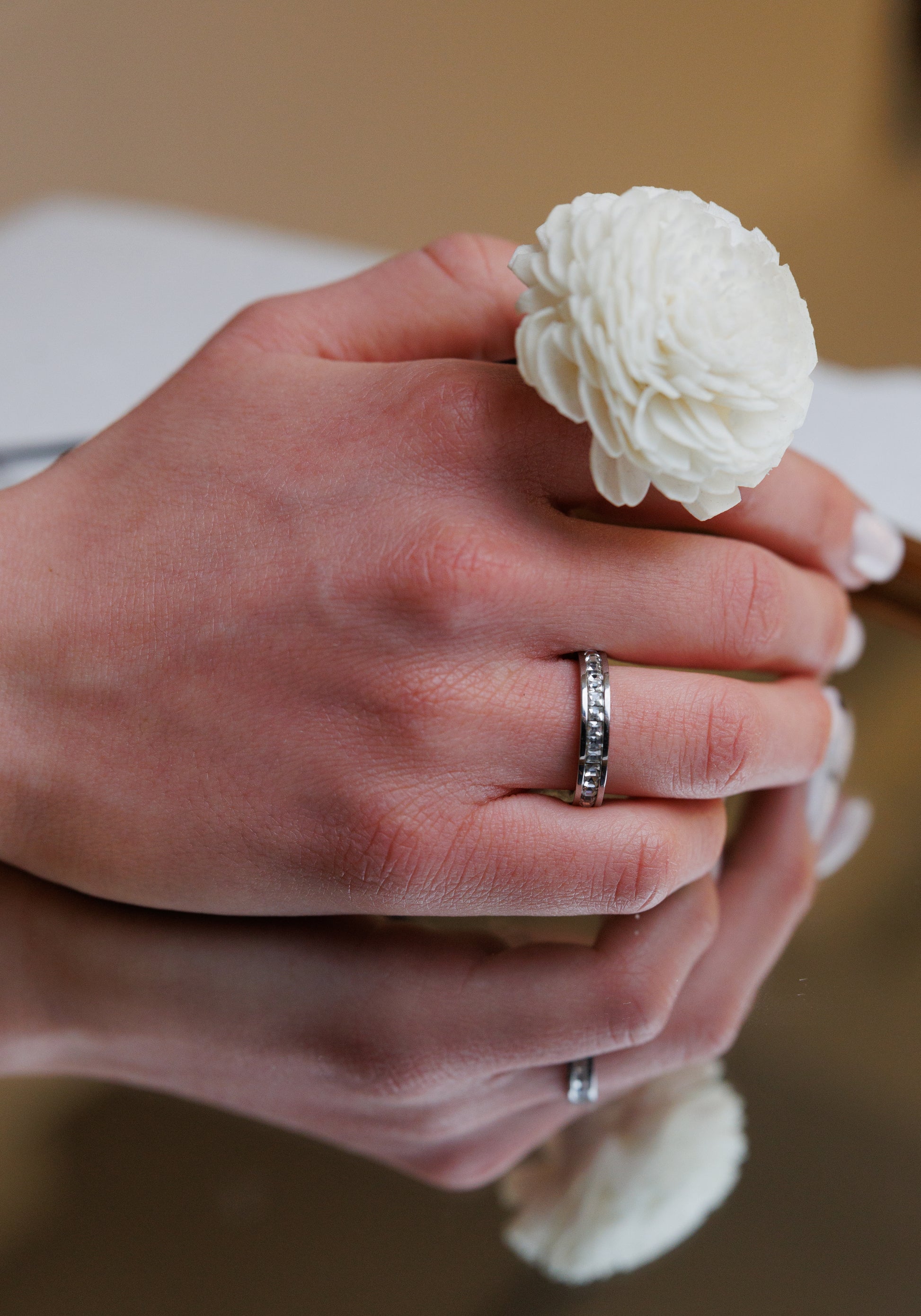 Classic stainless steel ring with a 4mm band width, featuring high-polish finishing and sparkling rhinestones. Durable, stylish, and perfect for everyday elegance or special occasions.