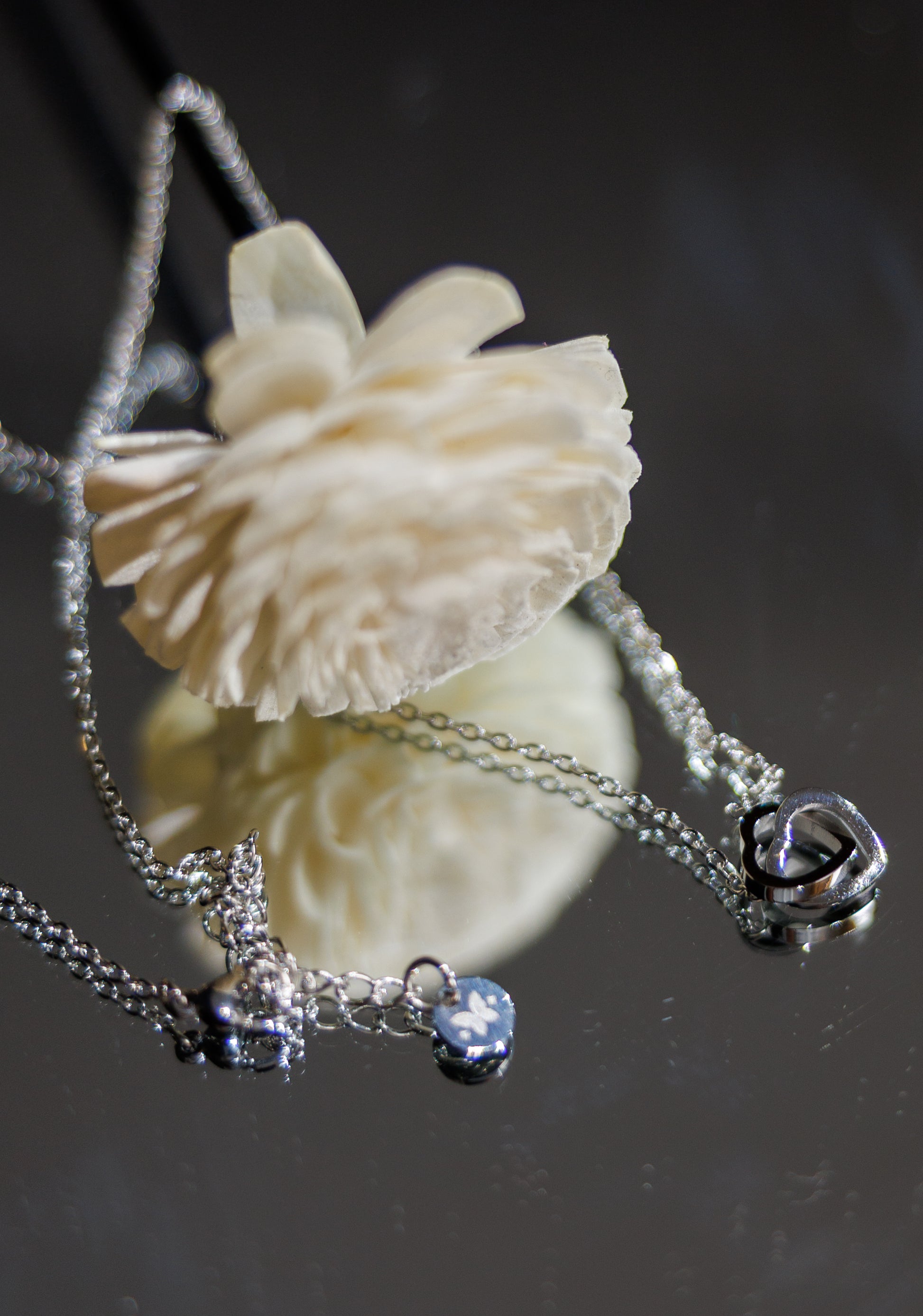 “Elegant stainless steel necklace featuring two interlocking hollow hearts.