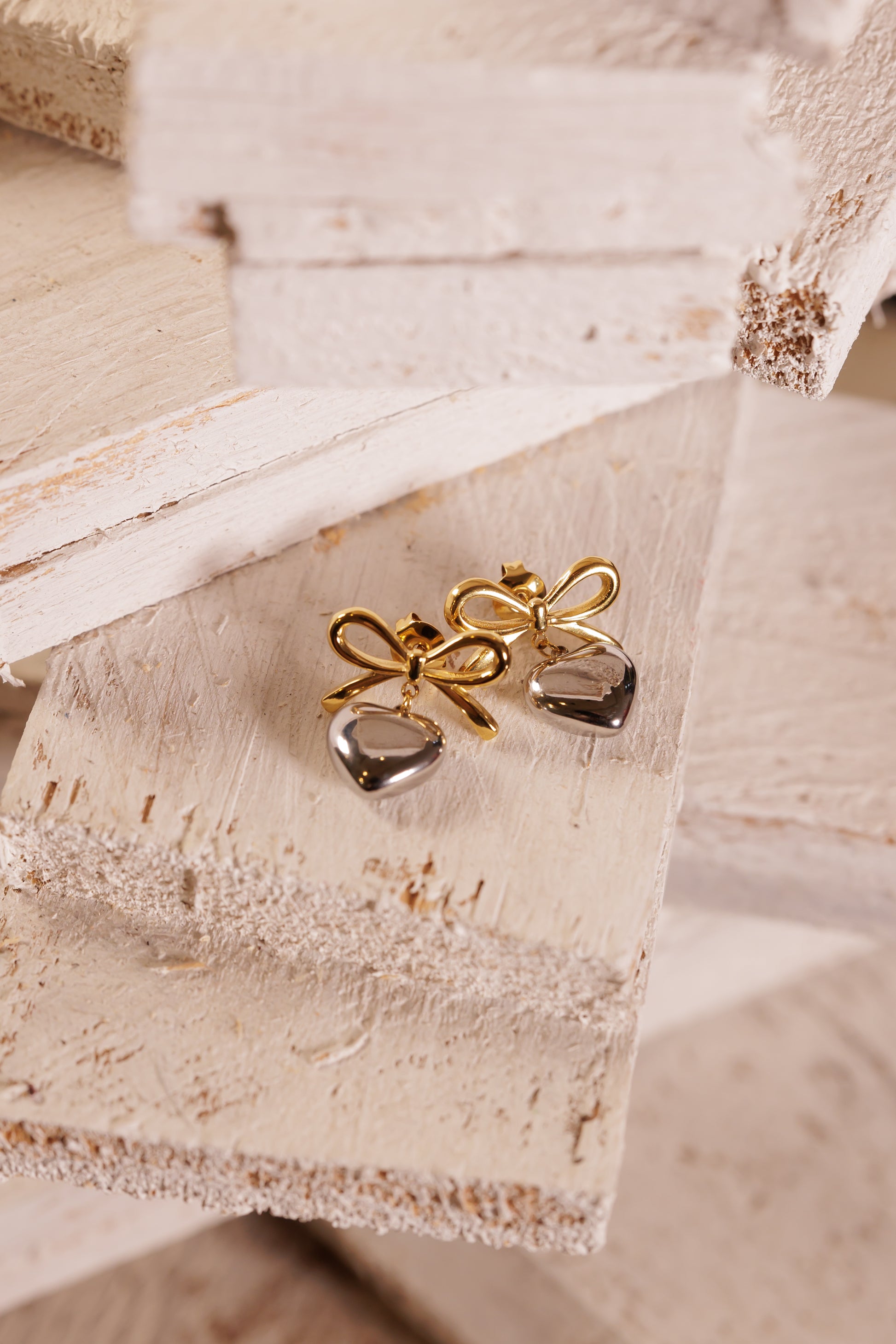 Charming stud earrings featuring a delicate bow design in both silver and gold tones. Elegant and versatile, these earrings bring a playful yet sophisticated touch to any look — perfect for daily wear or as a sweet accent for special occasions.