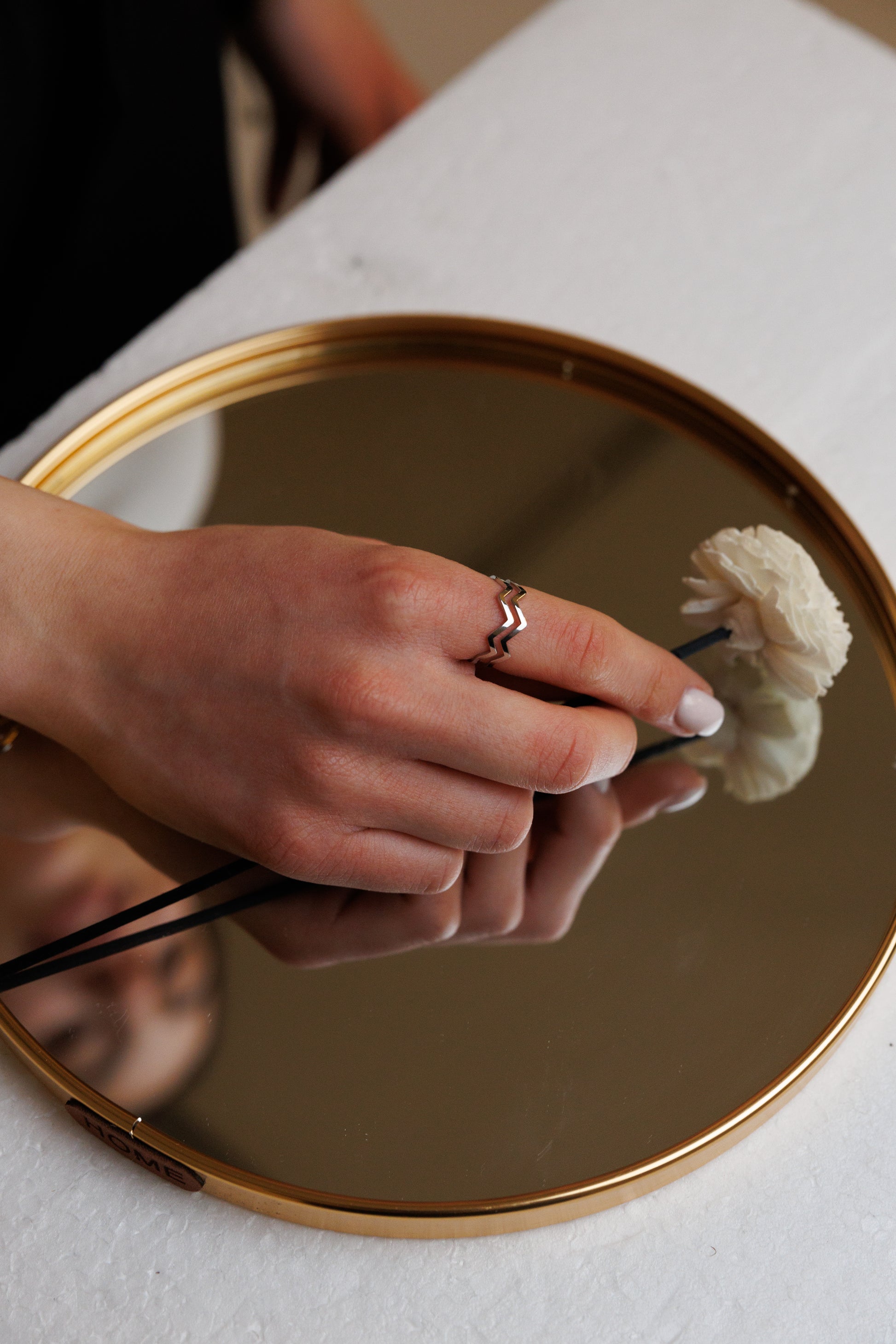 Trendy wave-shaped open ring made of stainless steel, featuring a modern geometric design. Adjustable and stylish, perfect for adding a unique touch to any outfit.